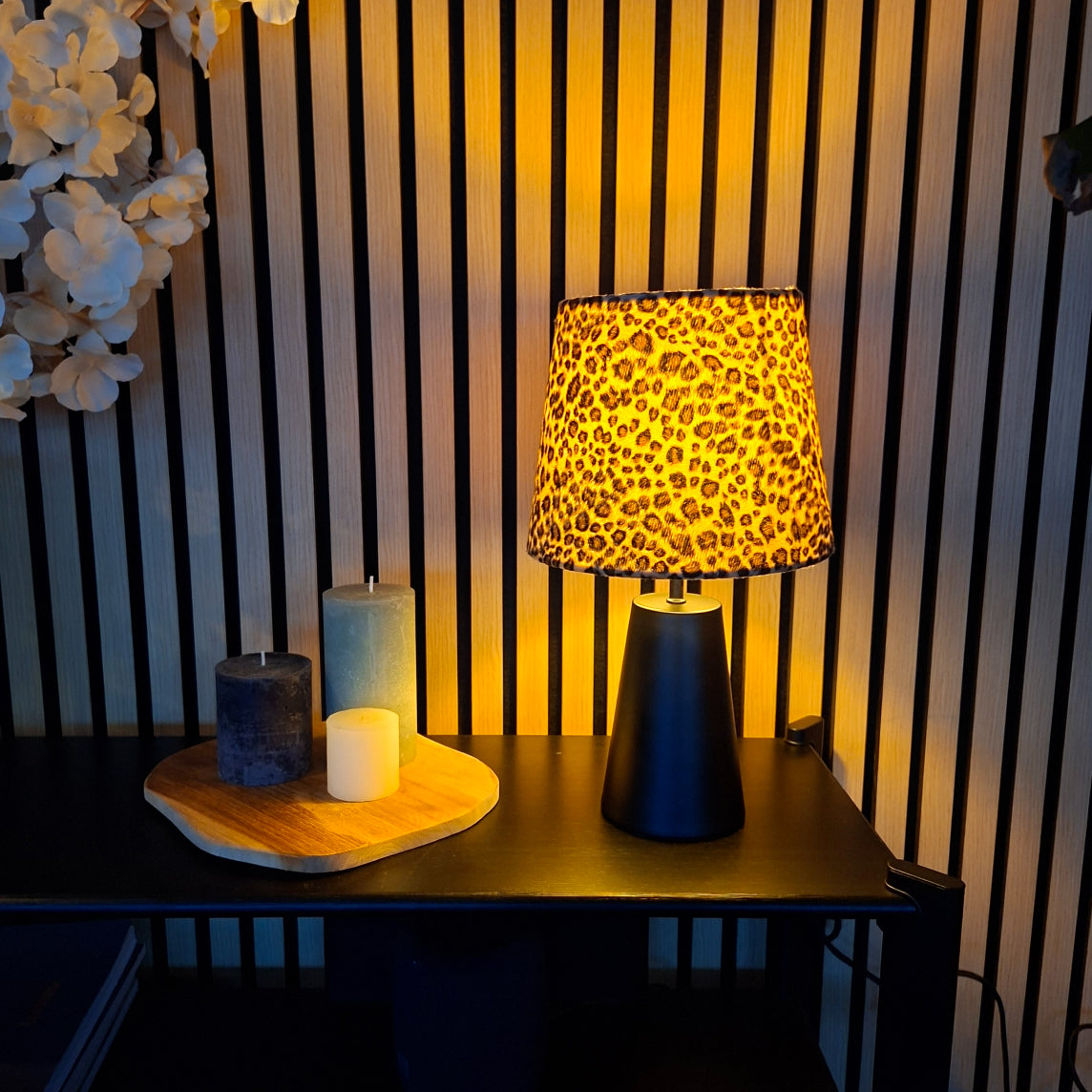 Various Leo Tischleuchte mit Samt-Lampenschirm im Leopard Design. Luxuriöse Tischlampe für Wohnzimmer, Schlafzimmer oder Hotel-Chic Interieurs.