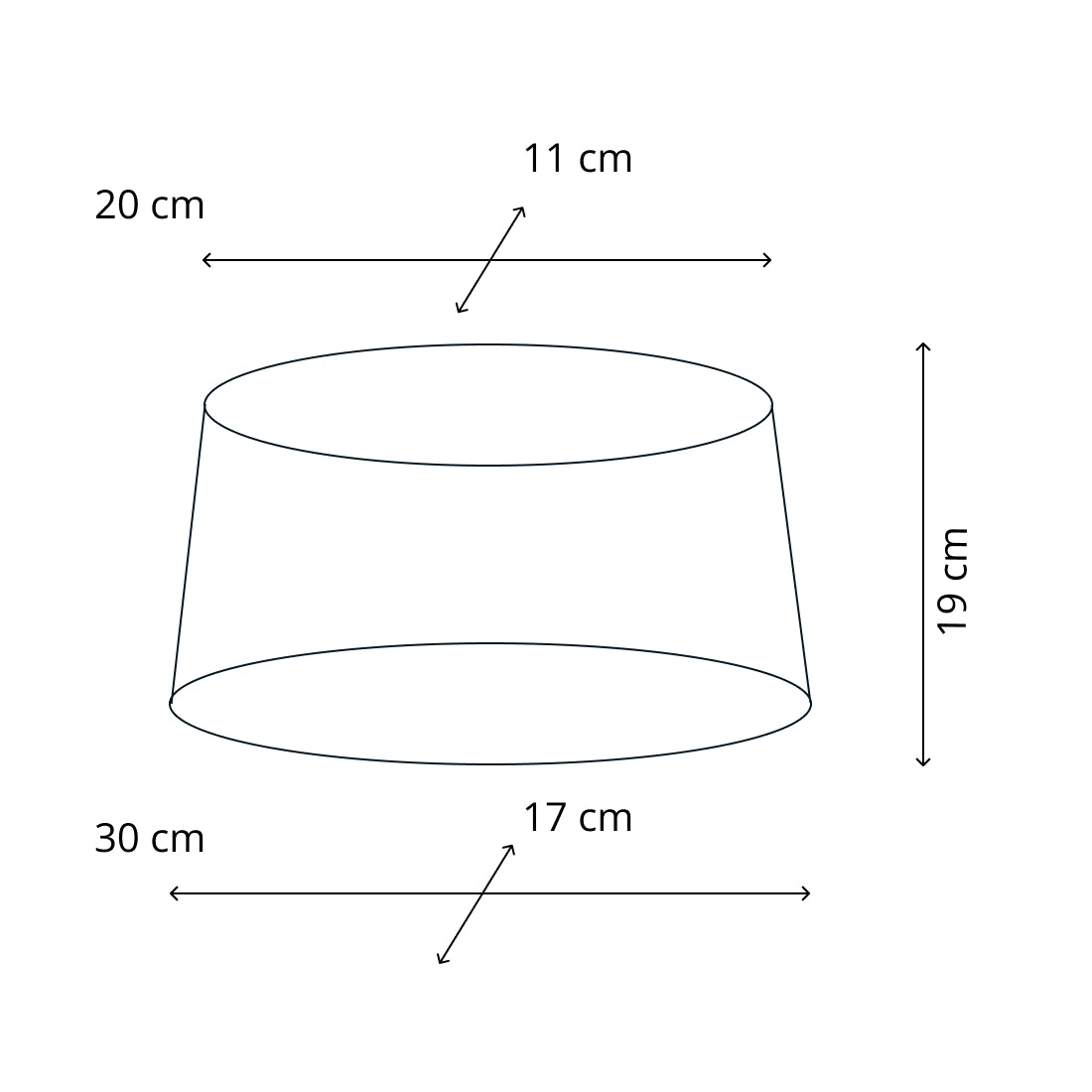 • Ø30 cm: oben 20x11 cm | unten 30x17 cm | Höhe 19 cm