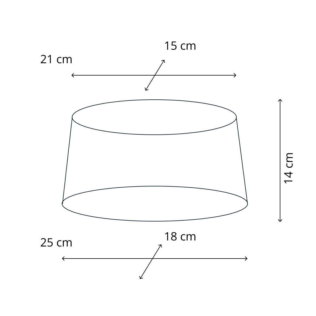• Ø25 cm: oben 18x13 cm | unten 25x18 cm | Höhe 15 cm