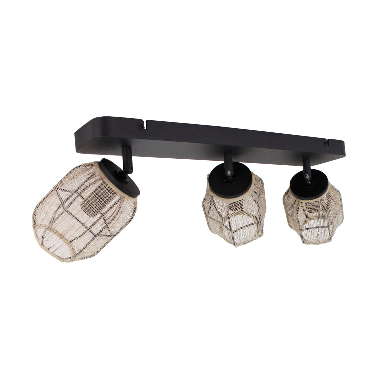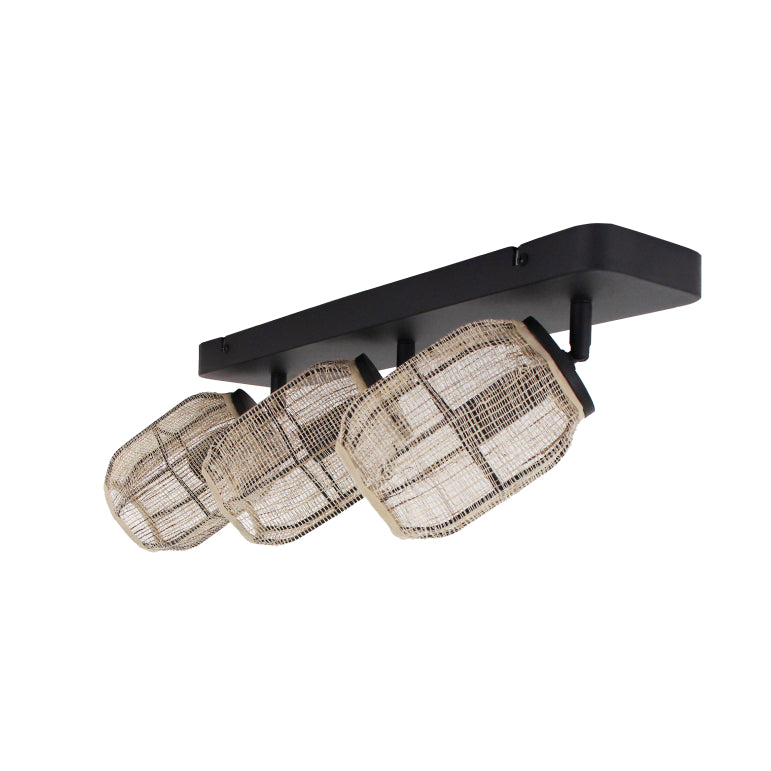 Chericoni Nature Jute Plafondspot – 3-flammig. Bambus & Jute, Ø11 cm, E14. Verstellbare Spots, modern & natürlich, ideal für Wohnzimmer & Flur.