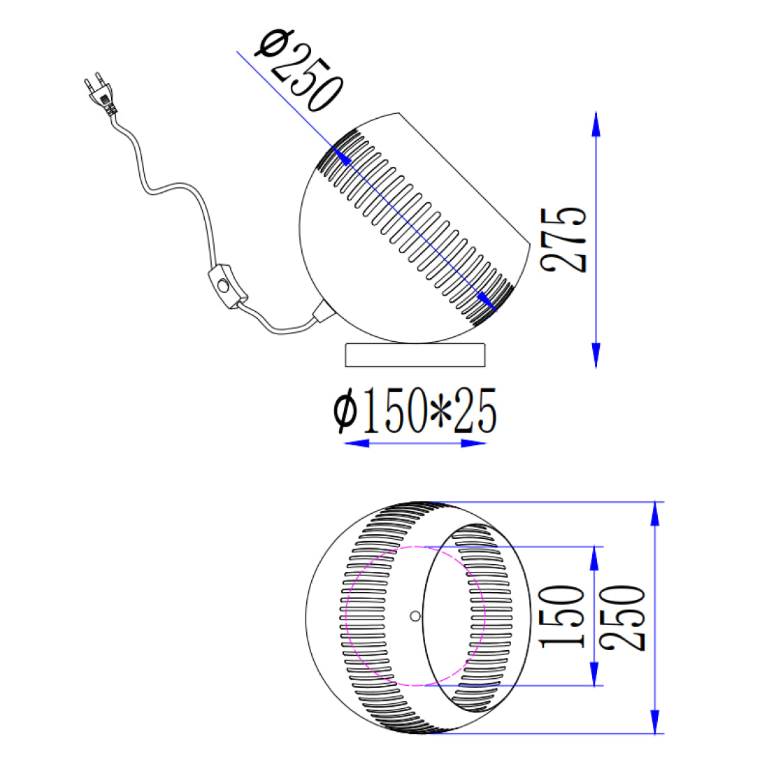 Various Globe Tischlampe – Ø 25 cm – Industrial & Modern – Schwarz – E27