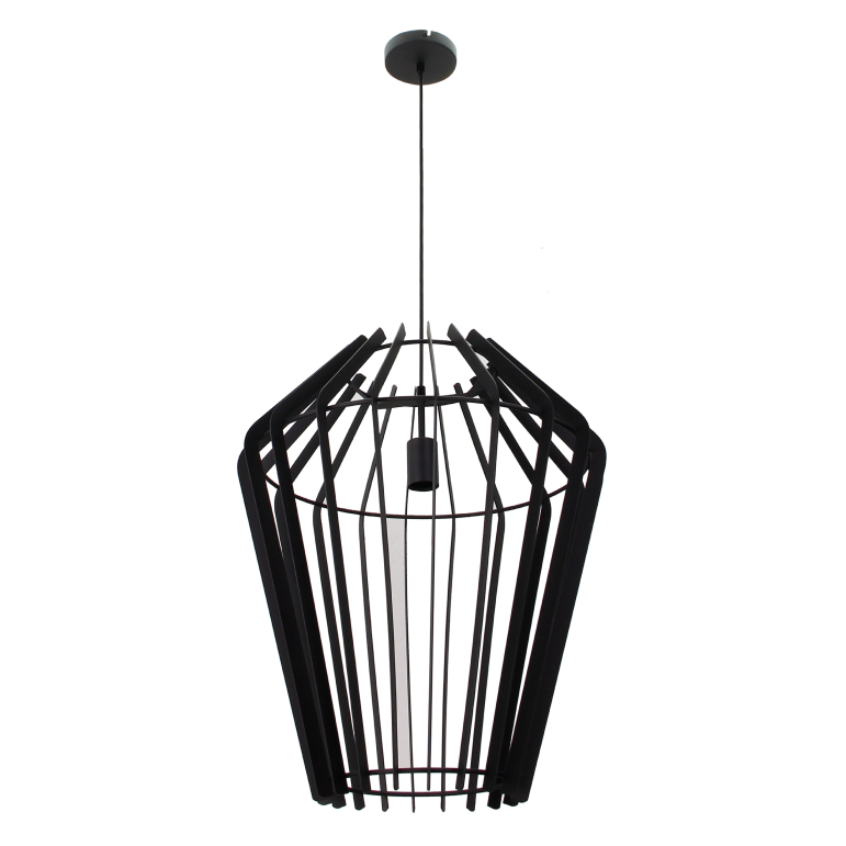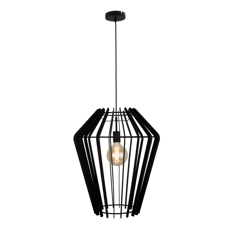 Moderne Hängelampe mit offenem Metallrahmen in Schwarz. Ø50 cm, E27-Fassung, ideal für Wohnzimmer, Esszimmer oder Flur. Ohne Leuchtmittel.