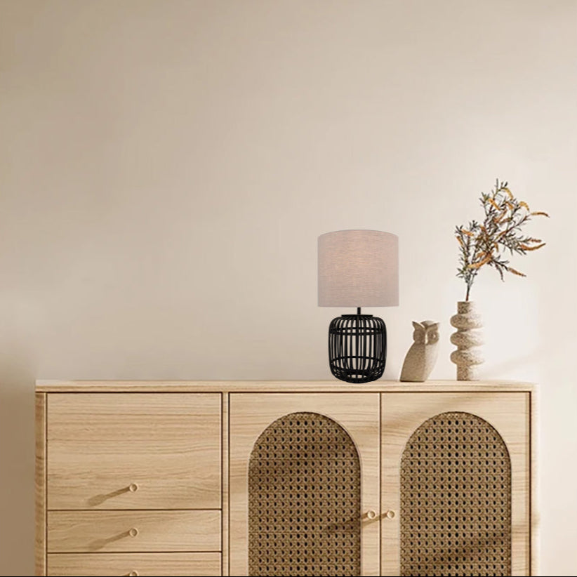 Die Various Woven Tischlampe in Schwarz vereint Boho-Charme mit modernem Design. Erhältlich in Ø24 und Ø30 cm, mit E27-Fassung für LED-, Halogen-, Glühlampen oder Smart-Home-Leuchtmittel. Perfekt für stimmungsvolle Beleuchtung in Wohnzimmer, Schlafzimmer, Flur oder auf dem Schreibtisch. IP20, nur für Innenräume.