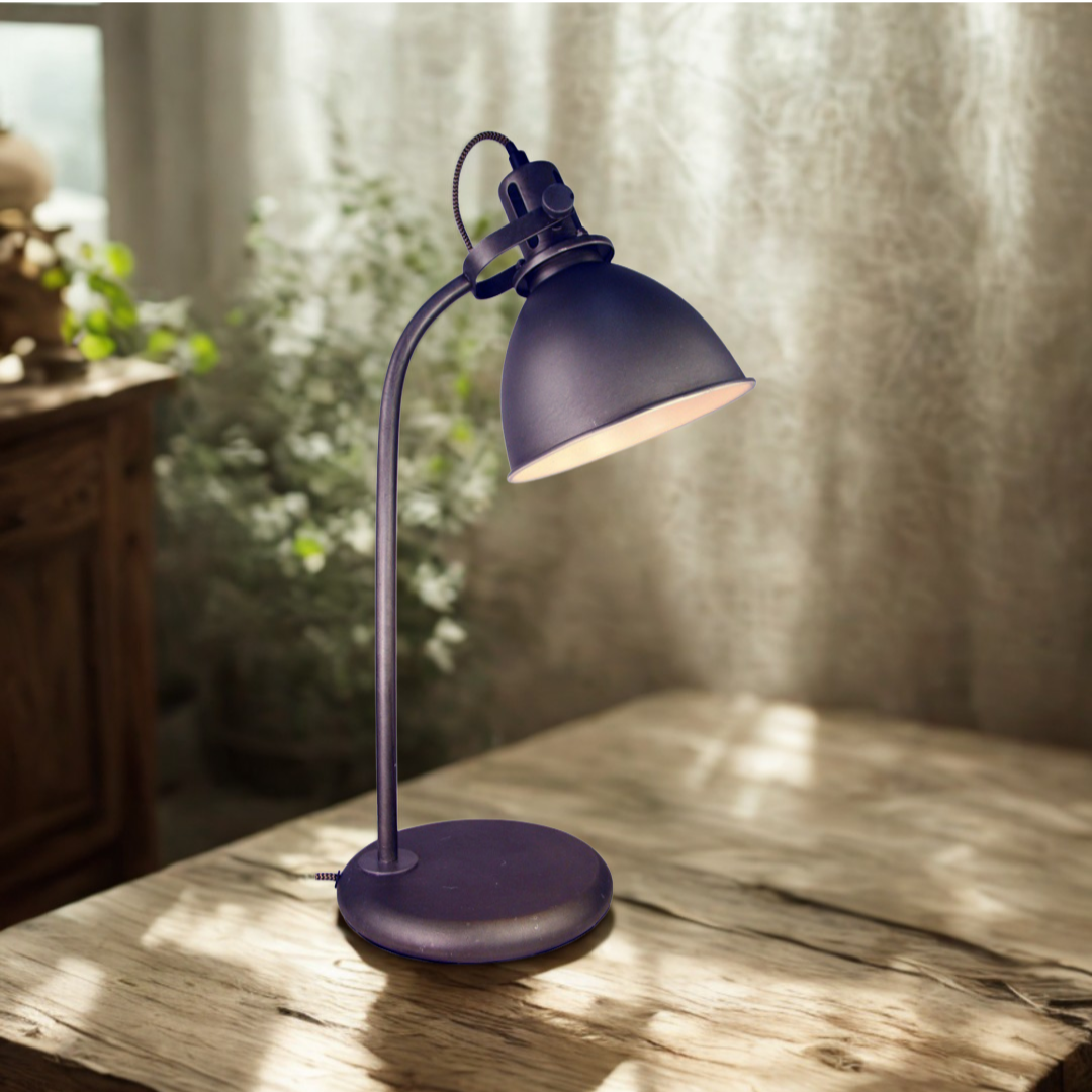 Robuste und stilvolle Tischlampe aus mattem schwarzen Metall. Die Various Black Steel Tischlampe ist perfekt als Leselampe, Schreibtischlampe oder stimmungsvolle Beleuchtung im Wohnzimmer. E27-Fassung, höhenverstellbarer Lampenschirm, 46 cm hoch.