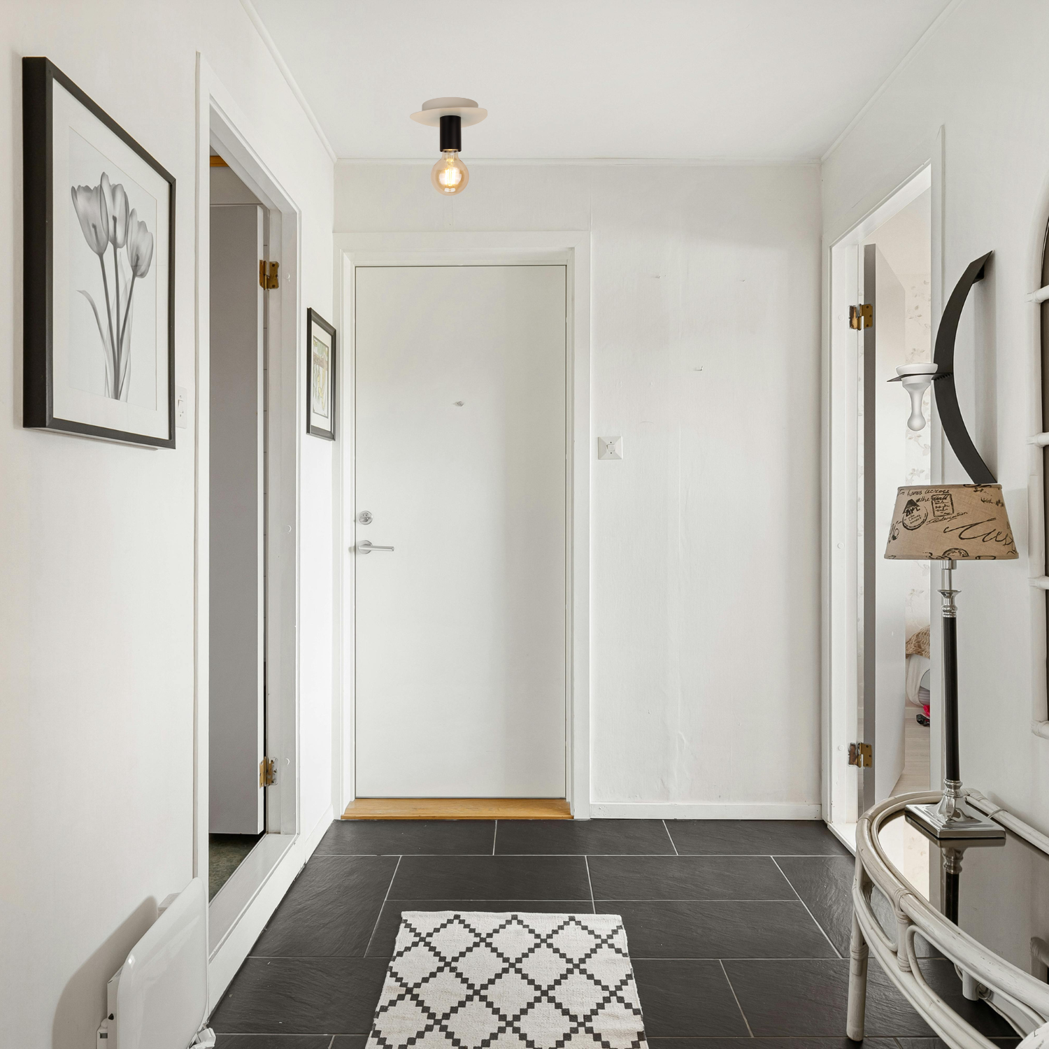 - De plafondlamp heeft een wandschakelaar