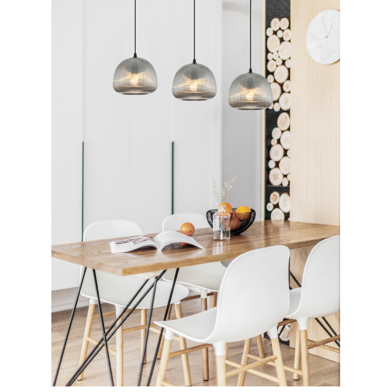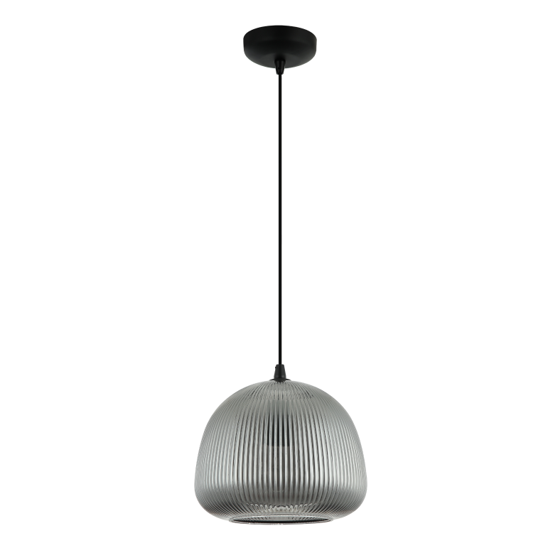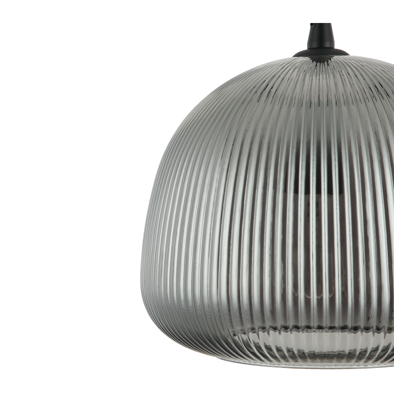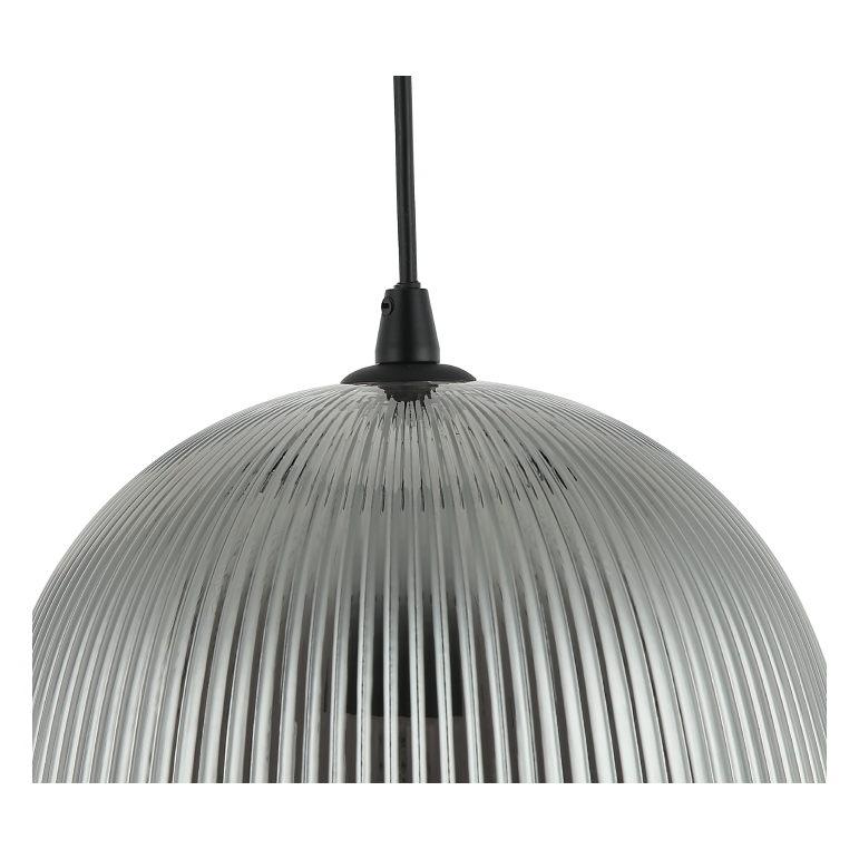 Moderne Chericoni Bra Hängelampe Ø25 cm aus geriffeltem Glas in Grau, E27-Fassung, ideal für Esszimmer, Küche oder Wohnzimmer.